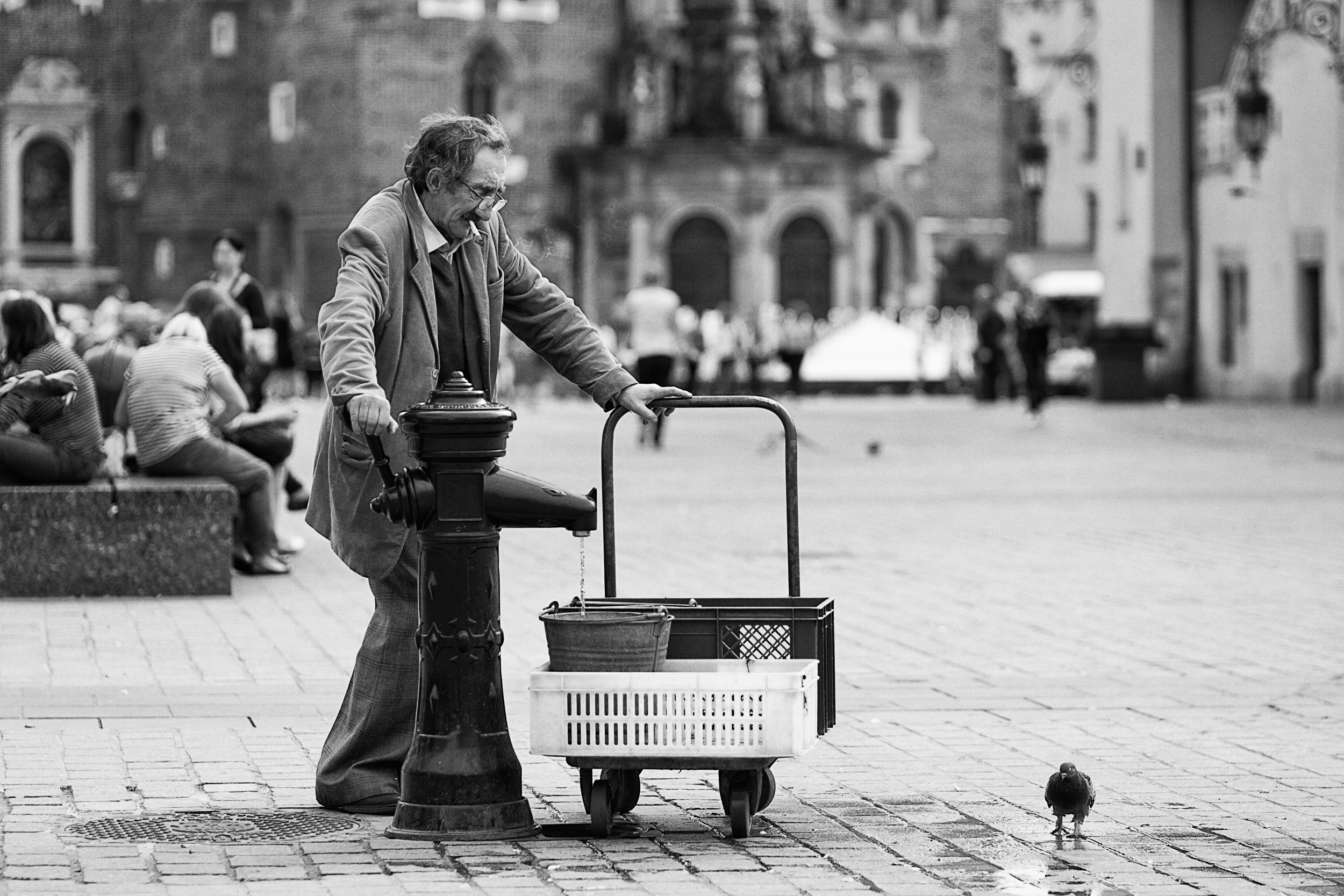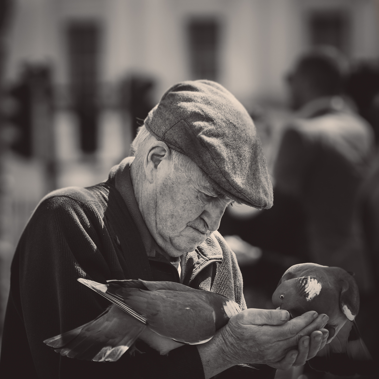 ‘The man with pigeons’ by Elena Raceala
